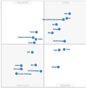 其中有EMC、HP(HPE)、HDS、NetApp、IBM还有Nimble Storage,在这份报告中,虽然分析大部分仍参考了Gartner的分析,但把这些全都列在自己的报告里,明显有定目标,拉阵仗“比划比划”的意思。