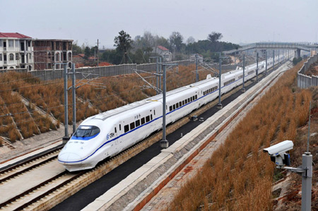 随着国产时速350公里的和谐号高速列车――武广高铁正式投入运营,标志着中国迅疾跨入了引领世界的“高铁时代”!