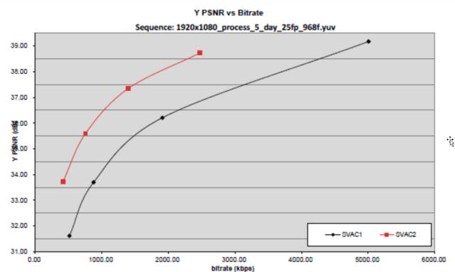 在同等质量下,压缩性能较SVAC1.0提高约一倍,达到与H.265相当的水平