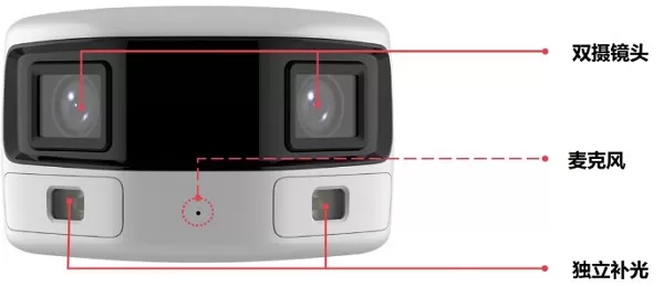 180°广角双摄臻全彩系列摄像机的水平视场角高达180°±10°,垂直视场角47.4°,采用双摄镜头实时融合拼接原理,拥有超大视野。