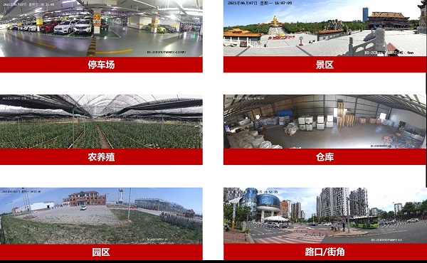 180°广角双摄臻全彩产品可广泛应用于园区、景区、场馆、路口、工地、广场、仓库、生产线、商场等需要大范围