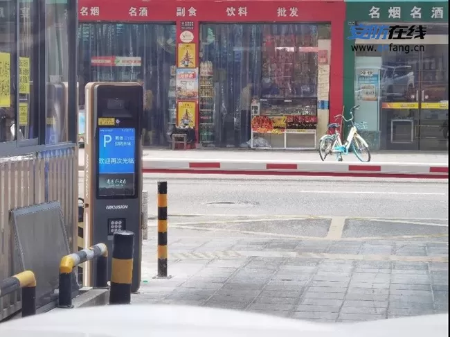 项目效果:采用2台海康威视守蔚抓拍显示一体机(DS-TMC2A7-E),入口由于高度限制使用了1台曲臂杆道闸,出口使用1台快速直杆道闸,降低逃费的可能性。