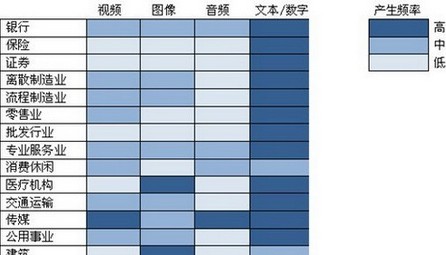 图:麦肯锡对不同行业所产生的数据类型的分析