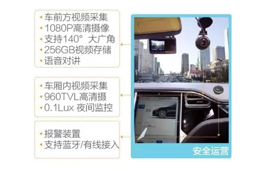 高清视频录像功能,行车记录仪和车内专用摄像机保证了车内车前无死角监控,如乘车过程中发生事故、纠纷都可实时记录,设备配置大容量的存储空间,保证视频音频能够记录下来,让司乘人员远离纠纷;