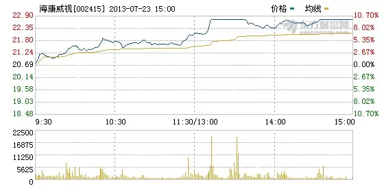 7月23日,安防概念股成为盘面上新的亮点,随着海康威视、飞乐股份、安居宝的涨停,带动板块内其他个股大幅飙升,大华股份涨超8%,高新兴、中威电子、华平股份等个股快速上涨,板块均涨幅达6.04%,成为两市涨幅第一的板块。