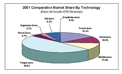 2001年生物识别技术市场份额表