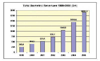 1999-2005生物识别技术产值增长趋势
