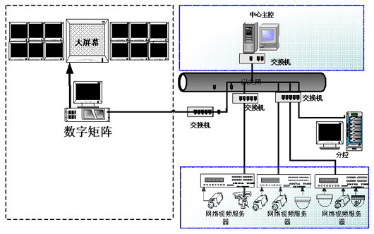 目前在大型联网监控系统的应用中,主要出现了两种主流的较为成熟的方式:一种是利用视频矩阵联网的方式,矩阵子系统之间通过以太网联网,传输视频图像;另一种是利用计算机网络传输方式,中心采用数字矩阵,实现远程对子系统视频图像的监控。