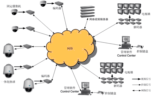 在数字化网络联网系统中,基于IP摄像机,以嵌入式网络视频服务器为核心,通过网络集中存储方式的系统解决方案代表了监控系统的主流发展趋势。