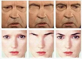 上图像是理查德?尼克松和维诺娜?赖德的本来相貌。大多数的人是通过中间这张有眉毛和没有眼睛的图像识别出理查德?尼克松和维诺娜?赖德的,而不是通过左边有眼睛而没有眉毛的图像识别出他们俩人的。