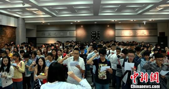 图为参加司法考试的重庆考生宣誓“诚信参考”。