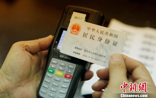 图为安全系统手持机扫描身份证,进行“人脸识别”比对。