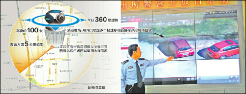 在高空监控探头的选点上,以商圈、医院、学校、政府机关、人群聚集地、主次干道为主要监控对象,力求覆盖市区交通的咽喉要道,使其成为民警的“千里眼”,仅在后台监控就可掌握千米之外的实时动态。