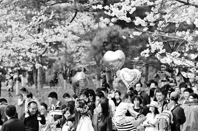 29日上午9点,玉渊潭、植物园、动物园门区游客就开始增多,颐和园、天坛公园全天人流不断。从整体来看,游客基本集中在上午游园。记者在玉渊潭公园看到,上千株樱花已进入盛花期,赏樱高峰提前到来。樱花树下,不少孩子支起画板写生,许多摄影社团组织影友现场教学。上午公园迎来了踏青赏花游园高峰,部分路段出现了“人挨人”的情况。