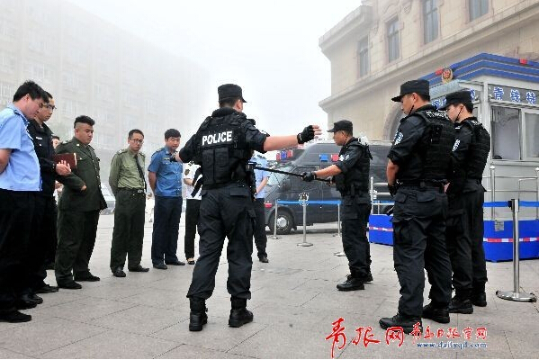 【安防在线 www.anfang.cn】橡皮棒要击打肘部或者腿部关节、防爆叉应该瞄准胸部或腰部、防爆盾牌应向前推挡……6月3日,交运集团火车站旅游汽车站与青岛铁路公安处特警支队开展了一次联合演练,特警队员针对车站可能发生的防暴反恐事件进行了模拟,而这种防暴演练还将在市内各车站陆续开展。随着岛城旅游旺季的到来,市内各汽车站将升级安保措施,硬闯安检将视为暴恐行为。此外,持票方可进入候车厅也成长途站安全规定。