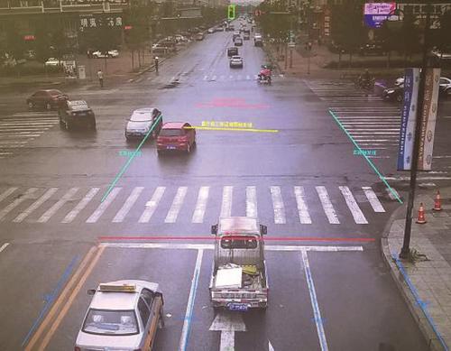 记者看到,在高清摄像头传回的影像上绘制了不同颜色的线,交警告诉记者,这些是用于拍照的触发线。交警提醒,司机在驶入导向车道时,在车道内随意变更车道,压到分道线会被拍照。在左右转弯时,一定要注意不要提前转弯,如果提前转弯,无论是前轮还是后轮压到了分道线,都会被拍下照片。当然像闯红灯等违法行为,也都逃不过高清摄像头。