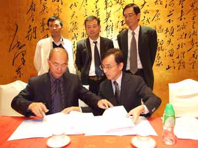 安和记科技董事长兼总经理陈安平与共信电子(深圳)董事长末广茂则交换协议文本