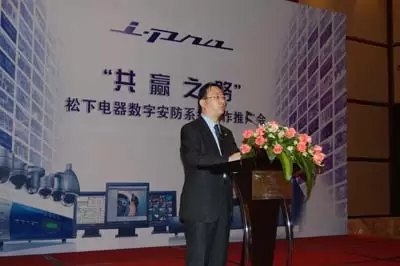 会议首先由松下电器系统解决方案营销公司总经理中山正春先生介绍松下电器的安防历史,他介绍到松下在中国的发展是由邓小平副总理和松下电器创始人松下幸之助老先生在1978年的会面开始的,事隔三十年,2008年中华人民共和国主席胡锦涛先生又访问了日本松下,全面听取了解了松下电器的电子产品技术。中山总经理还介绍到,今年是松下电器进入安防领域的第51个年头,从最好的黑白显像管摄像机到现在的第三代超级动态摄像机,IP数字智能摄像机,松下不断向市场推出领客户放心满意的安防技术和设备。今年,松下电器也很荣幸成为08年北京奥运会的AV安防监控产品的赞助商,各奥运场馆共使用松下监控设备2000多台。