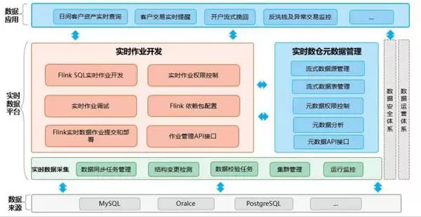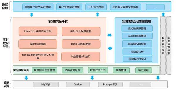 针对广发证券当前现状需求,睿帆科技拟通过建设实时数据平台,基于自主研发的InfoMover为其搭建实时数据采集模块,引入数据实时访问及计算的能力,更好地支持业务发展。实时数据平台建设,以实时数据作业为核心,体系化覆盖数据作业的配置、开发、管控等全流程功能。系统初步分为四个模块,分别是数据实时数据采集模块、实时数仓元数据管理模块、实时作业开发模块、实时作业运维管理模块。