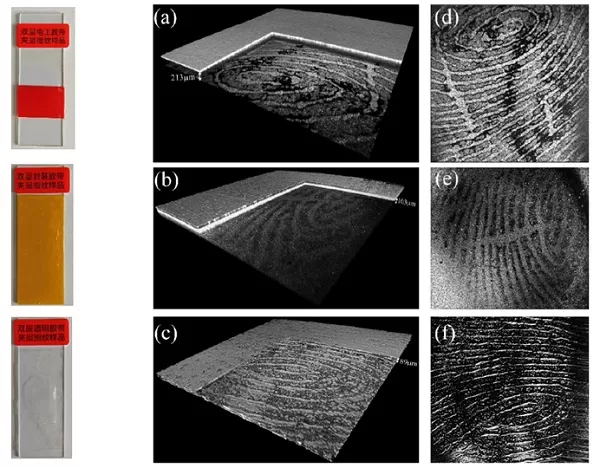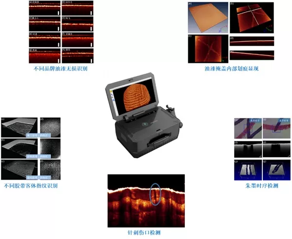 同方威视旗下鉴知技术OCT断层检测仪能在现场通过对物证进行原位、无损、快速、超高分辨的三维内部结构成像,通过测量物体内部的结构及光学特征参数,有助于发现常规方法难以发现的指纹等隐藏物证,是一种高效的指纹提取方法。