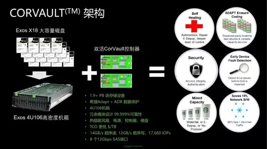 ▲希捷针对海量存储需求推出的Exos CORVAULT可自我修复的智能海量存储平台。