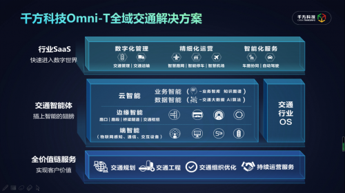 在交通行业数字化转型进入加速上升期的背景下,千方科技Omni-T全域交通解决方案覆盖智慧交通全业务领域、全栈式技术、全要素数据及全生命周期四个维度,依托行业SaaS、交通智能体及行业OS等核心能力,为智能物联时代交通行业数字化转型与发展提供了全新思路与实现路径。