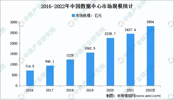 近年来,我国数据中心在机架规模、市场规模、用电规模等方面均保持高速增长。在机架规模方面,截至2020年底,我国在用数据中心机架总规模达到400万架,大型及超大型数据中心占比75%以上。在市场规模方面,我国数据中心市场规模从2016年的714.5亿元快速增长至2020年的2238.7亿元。在用电规模方面,过去十年间,我国数据中心整体用电量年均增速超过10%。2020年,我国数据中心的用电量约1500亿千瓦时,占全社会用电量的2%。