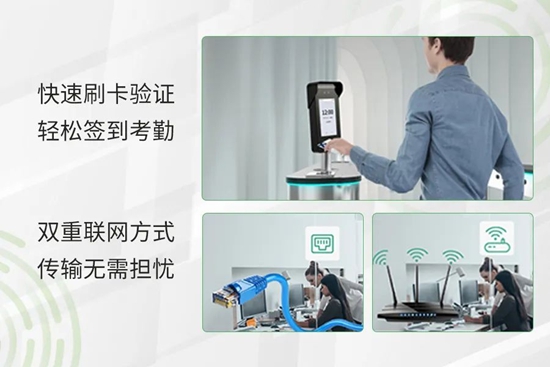 除了面部识别之外,xFace640-3D还支持手持式卡片快速打卡,实现刷卡签到即考勤,为员工提供安全可靠的工作环境的同时,助力企业轻松考勤、高效办公。