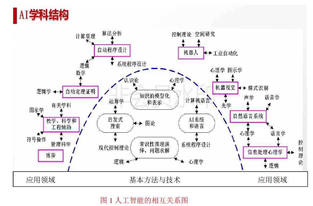 数学是多种学科的基础科学,数学进入语言、思维领域,人工智能学科以计算机科学来实现,必须应用数学工具,数学不仅在标准逻辑、模糊数学等范围发挥作用,数学进入人工智能学科,它们将互相促进相互发展。图1所示为人工智能的相关科学与当前应用的关系图。