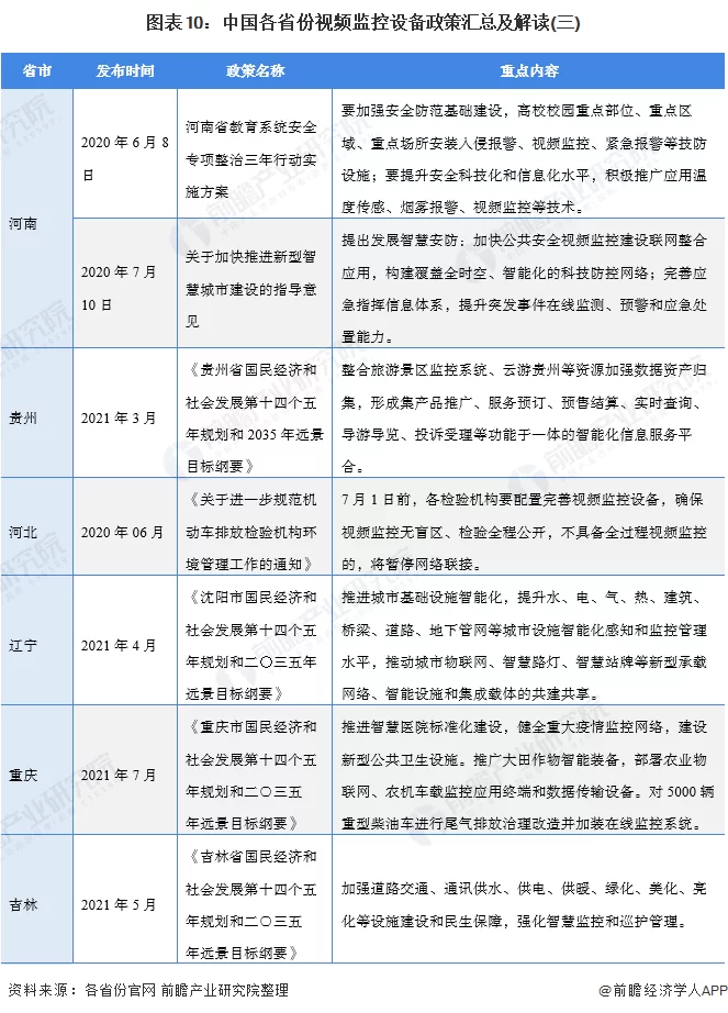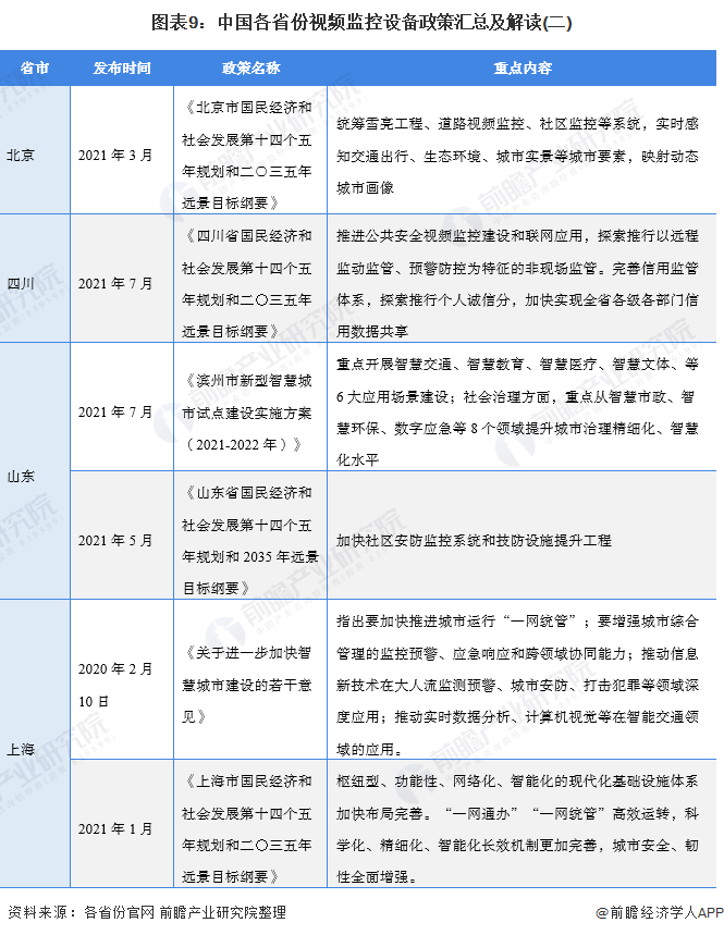 根据《“十四五”规划纲要和2035远景目标纲要》,提出“十四五”期间,我国将重点研制视频监控系统等工业控制装备,且推进各领域的数字化建设。对此,各省份也出台了相关的发展规划: