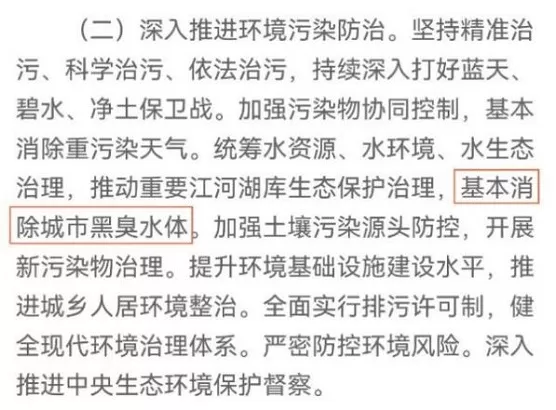 二十大报告中,“消除”的原话是:“基本消除黑臭水体”。