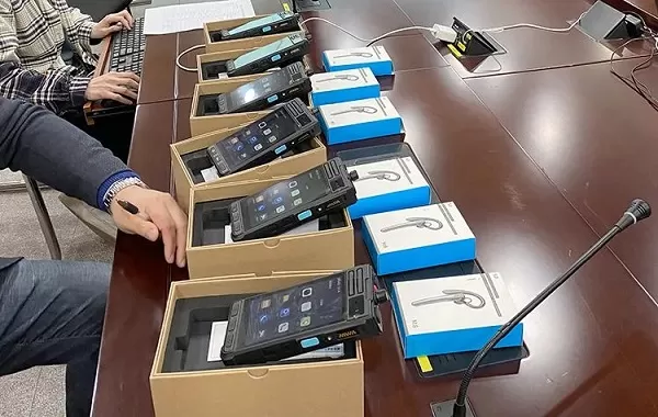 图片 5G单兵手持终端搭配蓝牙耳机调试现场