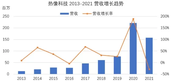 新三板挂牌企业热像科技在2020年迎来业绩爆发,数据来源:热像科技年报