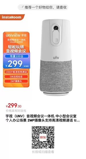 宇视Unear A2000音视频一体机已在京东商城正式开售,识别下方二维码抢先体验~