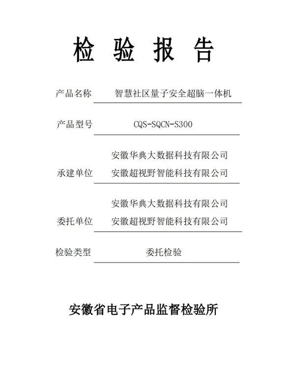 超视野联合华典大数据推出的“量子安全智慧社区一体机”,针对智慧社区场景中的智慧出行、AI安防、疫情防控、智慧管家服务等数据安全需求,将量子保密通信技术和储存传输技术融合在一起,实现量子安全加固,产品已通过安徽省电子产品监督检测所权威检测。