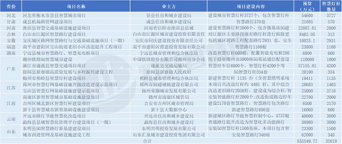 其中,湖南宁远县城市智慧路灯、智慧充电桩项目计划改造智慧灯杆660根、配置智能充电桩280个等,投资达6800万元;广州梅州市蕉岭县智慧灯杆建设项目计划新建智慧灯杆 1135 台(含智慧照明系统、5G无线系统、智慧安防系统、环境监测与应急系统、信息发布系统各 1135套,智慧充电桩系统 100 套),投资达1.94亿元……