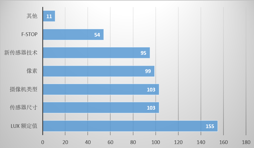 根据调查结果显示,首先需关注的是摄像机的lux(勒克斯,照度单位,约25%用户占比),以确定摄像机能支持的低照度环境,其次是摄像机的类型(变焦或者全景),因为在具体应用场景中,用户认为摄像机的观看距离太短,而变焦或在全景摄像机可以通过手动调整摄像机的参数,实现监控距离的调整。