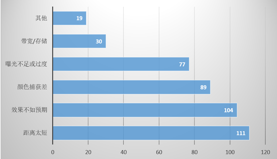 如上文所述,低照度摄像机在具体场景的应用最大的痛点是距离太短(26%),其次是摄像机的性能没有达到预期效果(24%)和颜色捕获效果差(21%)。