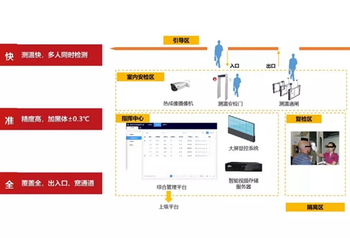 可在较远距离、大面积实现快速多人同时体温检测筛查、实现自动预警机制,做到早发现、早隔离、早治疗,有效控制传染源;可适用于“临时改建、扩建及新建”的医院出入口、门诊通道、临时通道等多种场景,能够快速搭建,立即投入使用,高效便捷。