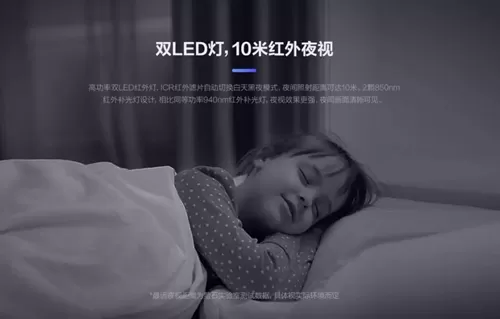 高功率双LED红外灯,ICR红外滤片自动切换白天黑夜模式,夜间照射距离可达10米。2颗850nm红外补光灯设计,相比同等功率940nm红外补光灯,夜视效果更强,夜间画面清晰可见。
