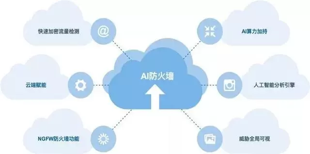 AI防火墙是基于AI硬件加速检测分析引擎的新一代防火墙,即具有AI芯片,可通过本地及云端大数据进行训练及建模,为未知威胁、未知用户行为及未知应用行为提供安全策略推荐,本地可对用户、应用及威胁进行检测与分析,具有全面高级威胁检测分析能力,能够应对各类复杂高效的高级网络攻击威胁。