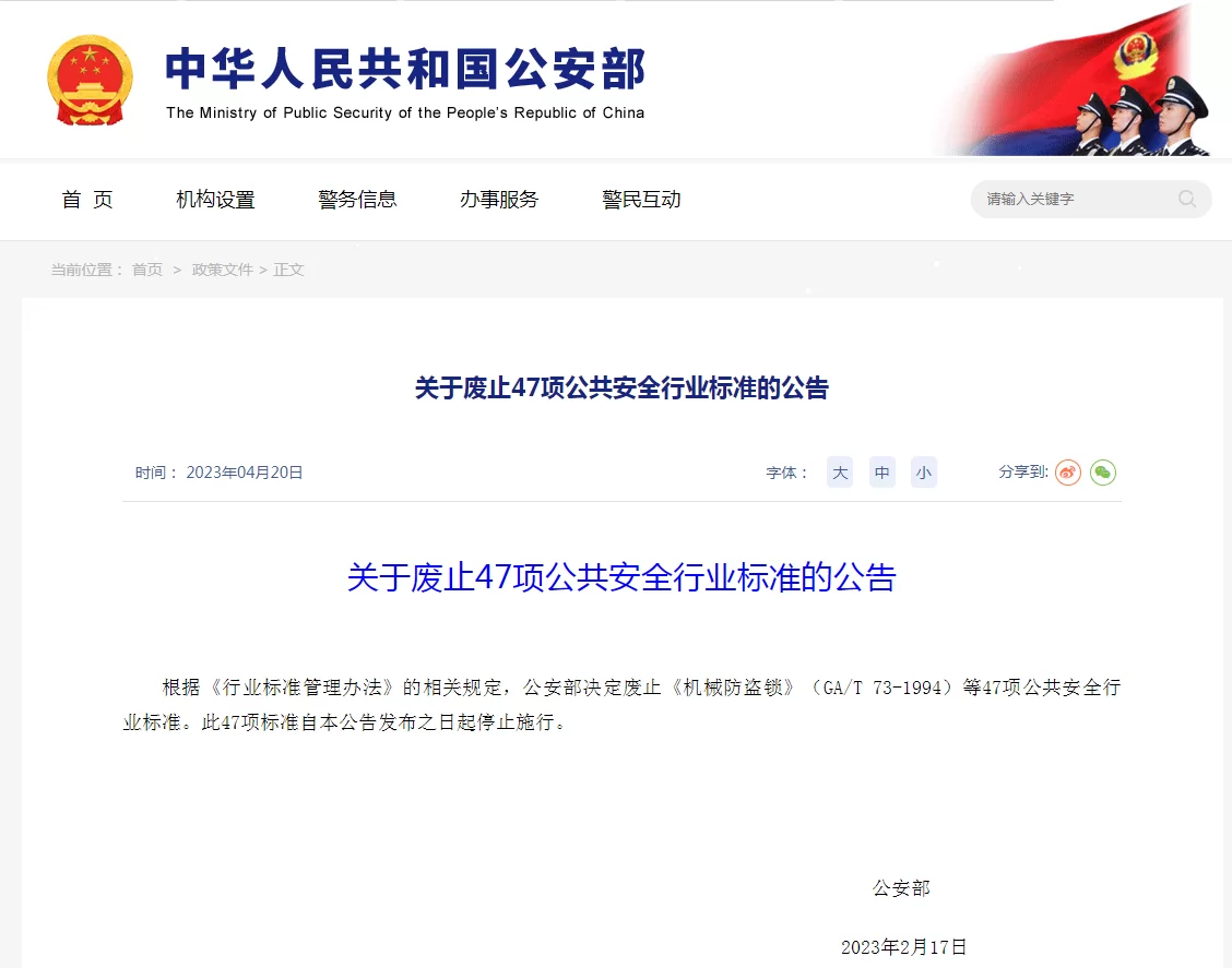 4月20日,公安部在其官网发布《关于废止47项公共安全行业标准的公告》。其中,有几项涉及安防行业细分领域的标准引起业内人士的广泛热议。