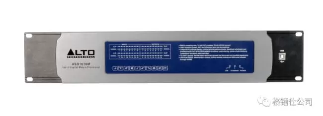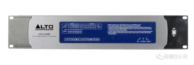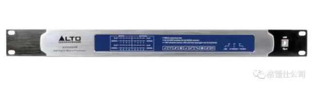 输出:分频,参量均衡,增益,静音,压缩/限幅器,相位,延时,连动调节。AUX通道有自动混音、自动摄像跟踪、反馈抑制和卡拉OK功能;内置测试信号发生器;USB、232&485、以太网端口;21个用户预设。256台级联,有密码保护功能。