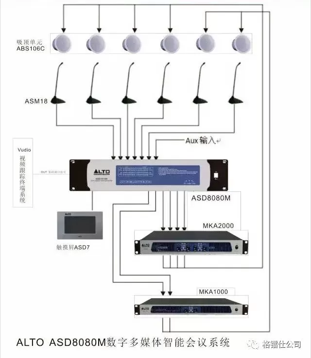 今天我们一起了解ALTO数字媒体矩阵主机:ASD8080M,ASD1608M,ASD1616M,ASC802、鹅颈麦克风及ALTO数字多媒体智能会议系统。