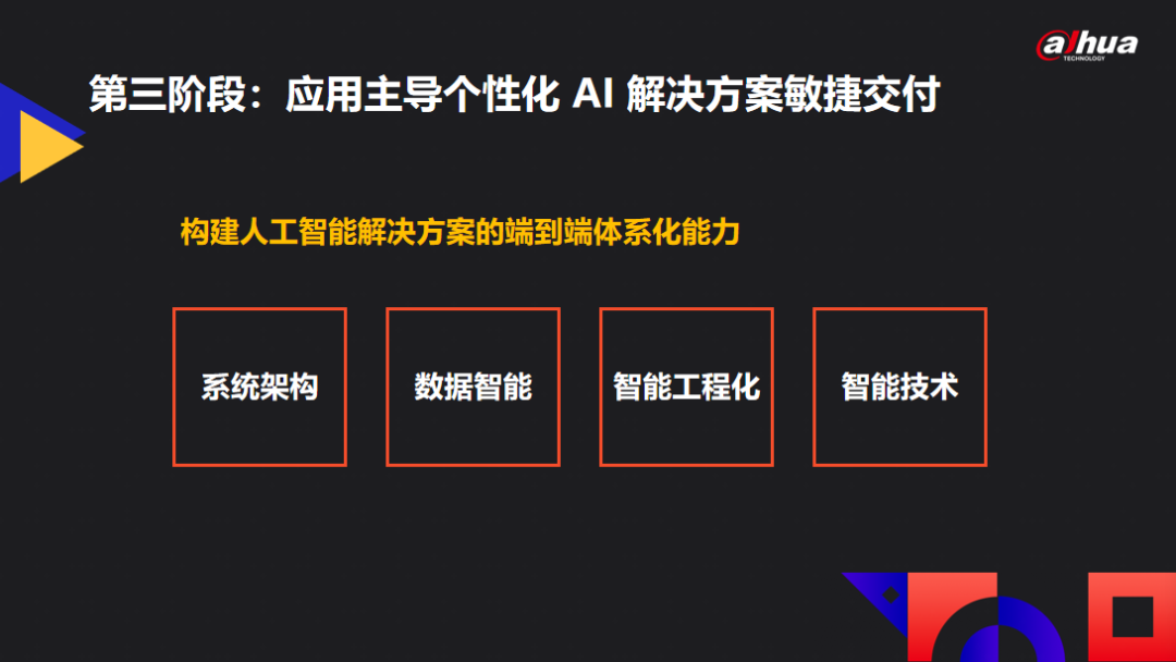 近年来,在算法商业化落地方面,大华积极应用主导个性化AI方案敏捷交付,构建人工智能端到端研发的全链路能力,实现AI从基础能力到算法研发到产业化应用落地,构建了围绕视图智能、3D智能、多维智能、控制智能等核心算法体系,实现了在各业务领域的人工智能算法、产品与解决方案的全面覆盖,赋能百行百业。