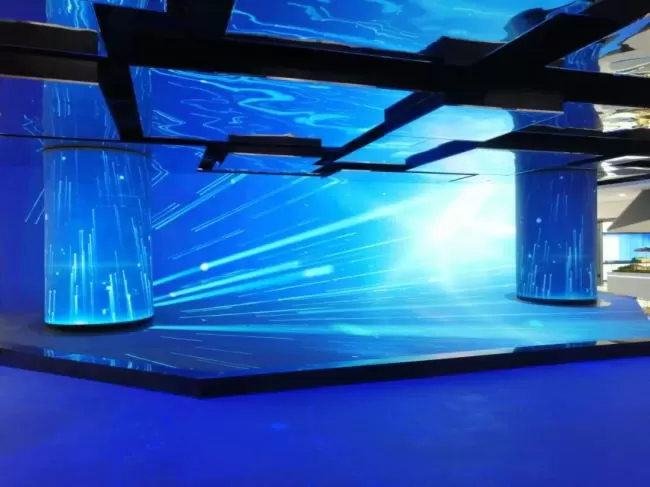 在内容塑造上它融入了雄安碳综合管理中心业务布局的信息亮点,美轮美奂的显示效果有效展示当前智慧能源领域的前沿 技术成果、应用和解决方案 。良好的沉浸式范围塑造,对往来游客形成深刻印象,体验显示高科技带来的视觉震撼。