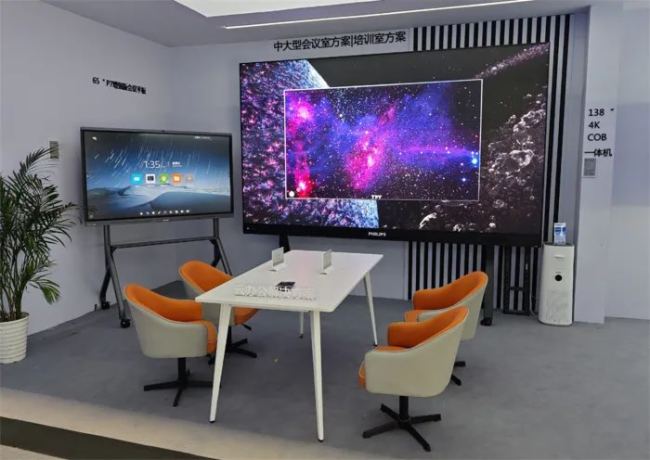 例如,在智慧办公产品上,冠捷科技不仅拥有LED显示屏、智能会议平板、智慧屏、办公显示器、电脑一体机、电子桌牌、会议预约屏等差异化显示硬件;更拥有AIOT物联网、大数据、AI人工智能、生物识别等核心技术以及搭载自主研发的国产化麒麟系统的智能会议空间产品;还拥有如专为影像工作室扥专业级影像应用提供的显示产品、具备云端集控优势的移动/电信云笔记本电脑、云一体机等特别类型的产品……这些产品的组合全面满足从微型/洽谈室、信创会议、双流视频会议、中大型会议室/培训室、多功能厅智能会议厅等容纳量从数人到数百人不同大小功能空间场景的智慧办公需求。