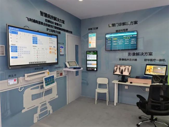 例如,在智慧医疗方案中,冠捷科技联合狄耐克、湖南旺旺医院、研华科技众生态合作伙伴共同打造了智慧病房显示方案、智慧门诊、影像解决方案等智慧医疗合作方案。冠捷供应链和先进显示技术,与专业医疗服务机构的行业经验高度结合,实现了更为专业的医疗智慧化、全屏信息化的次世代医疗体验服务解决方案的升级。