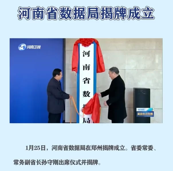 2024年1月25日,河南省数据局在郑州揭牌成立,省委常委、常务副省长孙守刚出席仪式并揭牌。孙守刚表示,河南省数据局的职责是统筹推动数字河南、数字经济、数字社会建设,立足河南实际,加强对数据基础制度、数据要素市场、数字产业化、产业数字化、数字社会、数字基础设施等领域的研究推进。统筹发展和安全,树牢底线思维、系统思维,加快探索适应河南数据特点的安全治理体系,构建兼顾活力和秩序的数据要素发展生态。