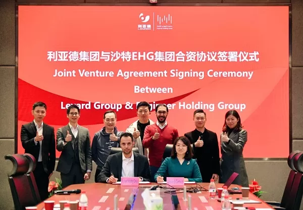 利亚德集团董事、利亚德光电副总经理、董事会秘书李楠楠与沙特EHG集团战略副总裁Abdullah Bin Swidan代表双方签署合资协议。利亚德蓝硕科技董事长陈剑出席并见证签约。合资公司将结合利亚德的技术、运营优势与沙特EHG的融资、本土优势,推动沙特LED显示及照明行业的进一步发展。